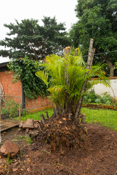 一昨日は、庭の食べられない種類のヤシの木を根っこを残して全部切り倒した。